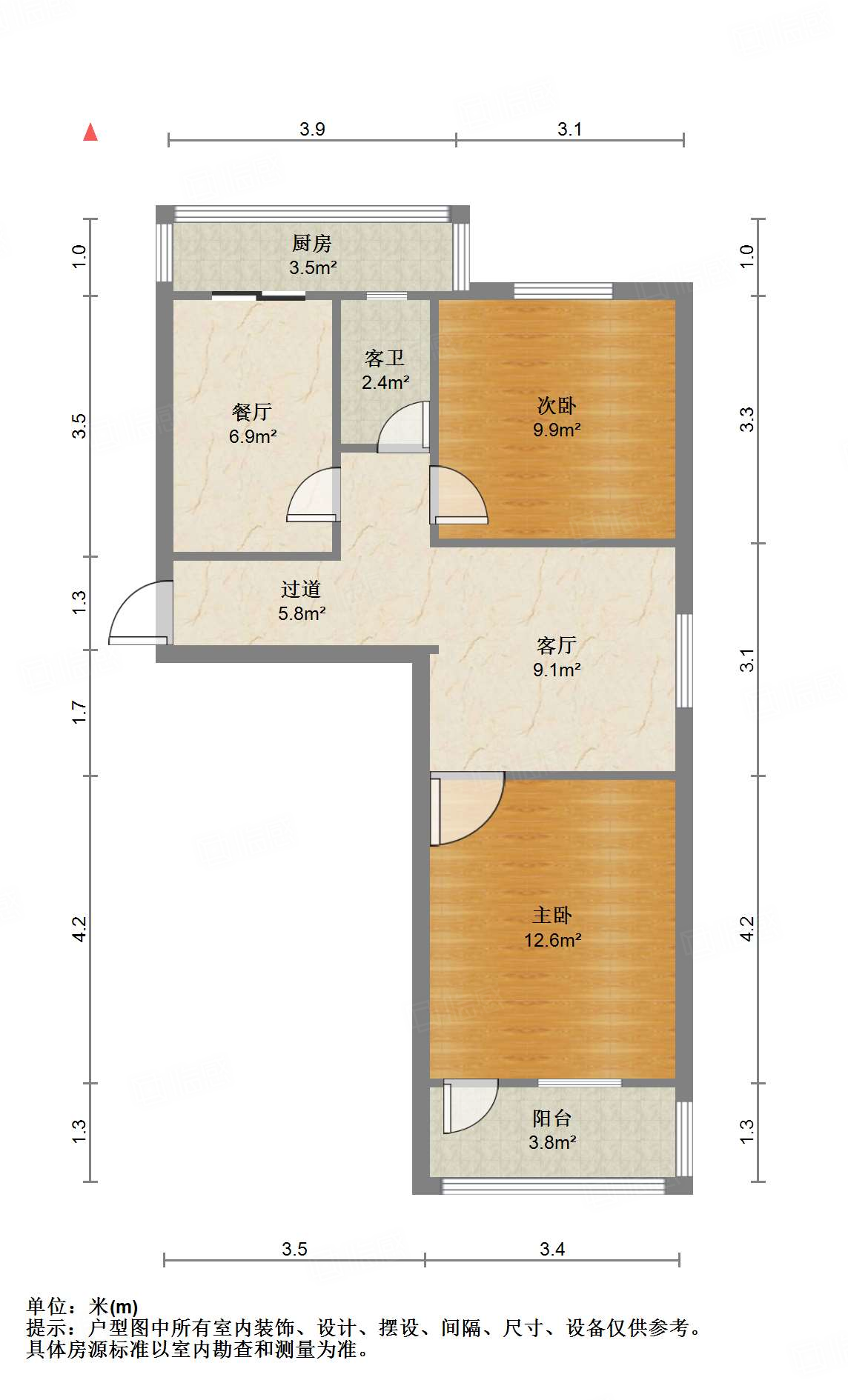 朝向南北 建筑面积55㎡