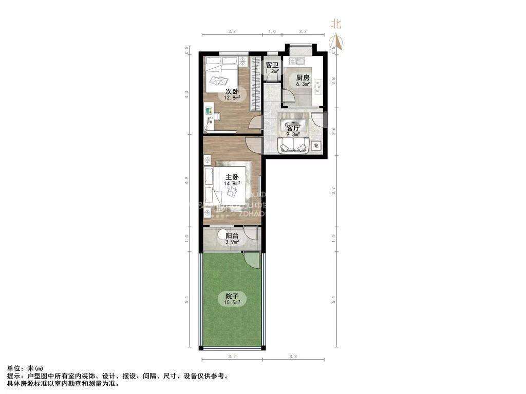 朝向南北 建筑面积60㎡