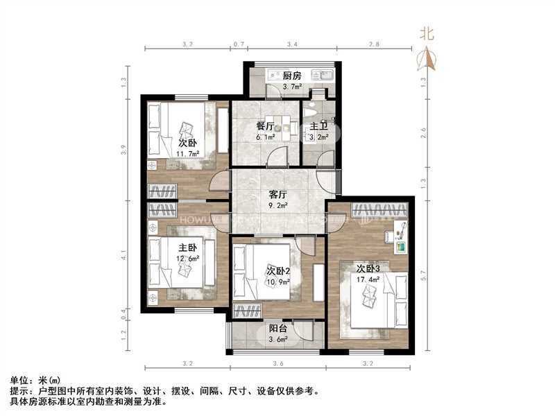 厅室4室2厅1卫1阳台