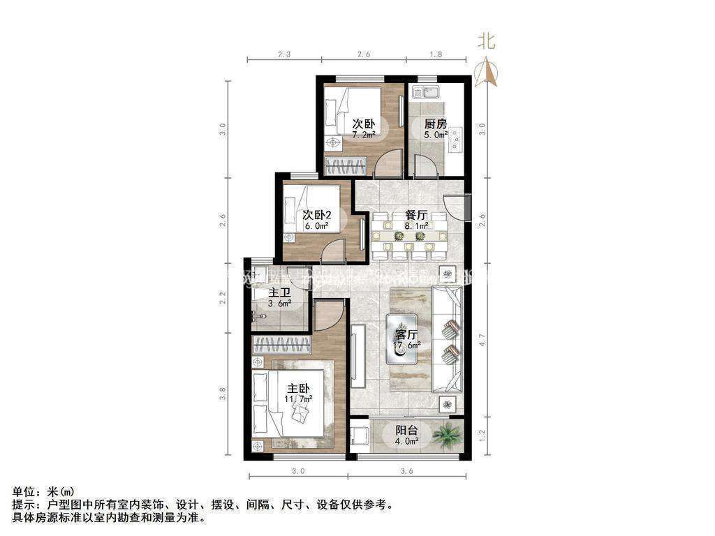 厅室3室2厅1卫1阳台