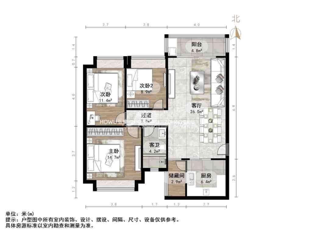 朝向南北 建筑面积119.45㎡