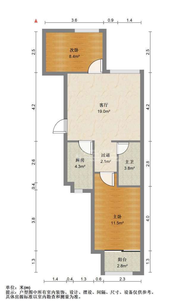 厅室2室1厅1卫1阳台