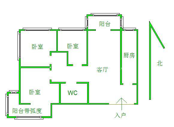 厅室3室2厅1卫1阳台