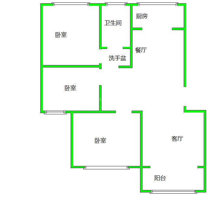 厅室3室2厅1卫1阳台