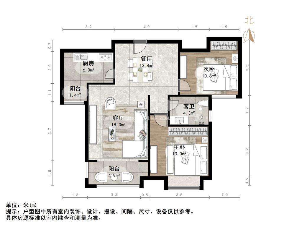 朝向南北 建筑面积92㎡