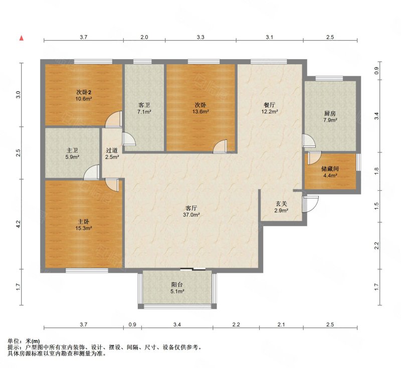 厅室3室2厅2卫1阳台