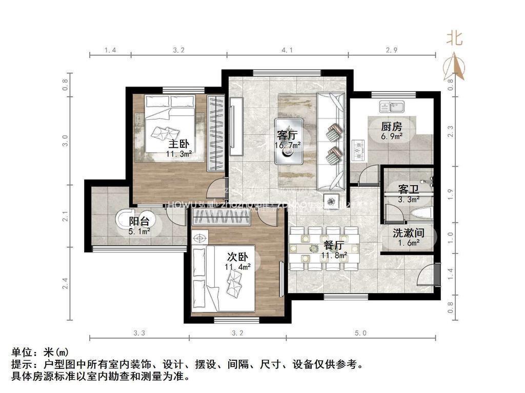 朝向南 建筑面积101.06㎡