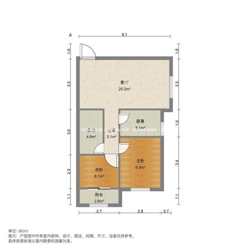 朝向南 建筑面积65㎡