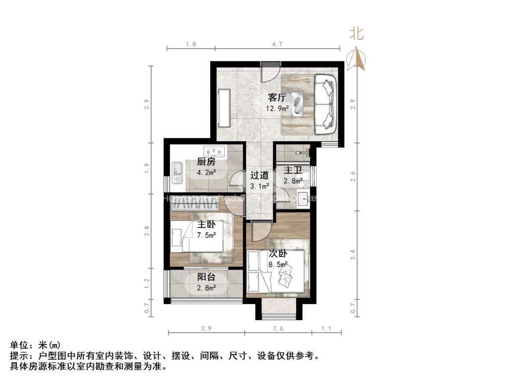 厅室2室1厅1卫1阳台