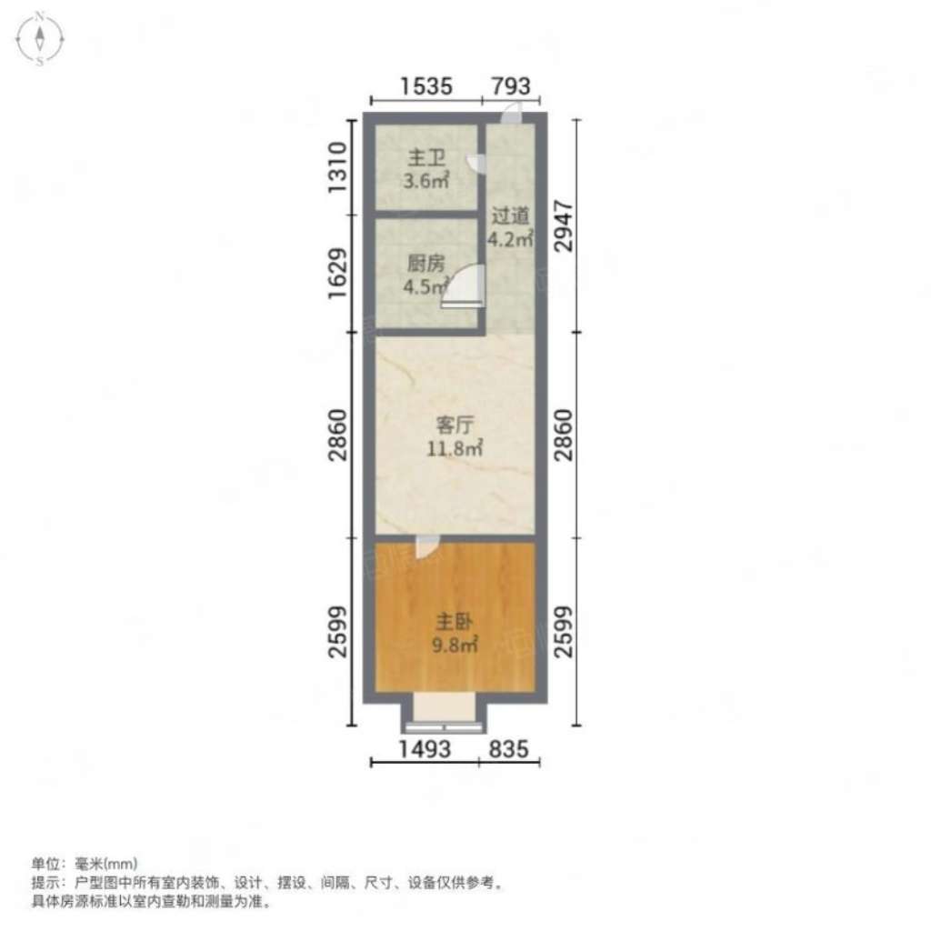 朝向南 建筑面积45㎡