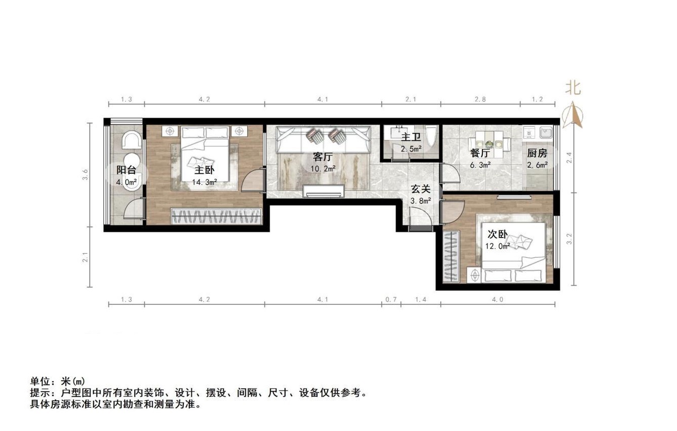 朝向南北 建筑面积67㎡