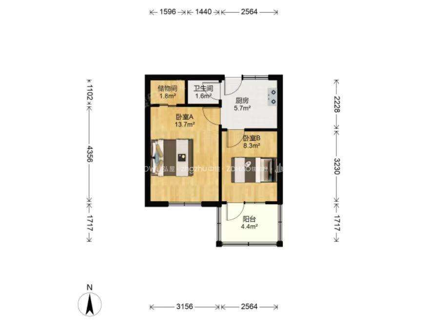 厅室2室0厅1卫1阳台