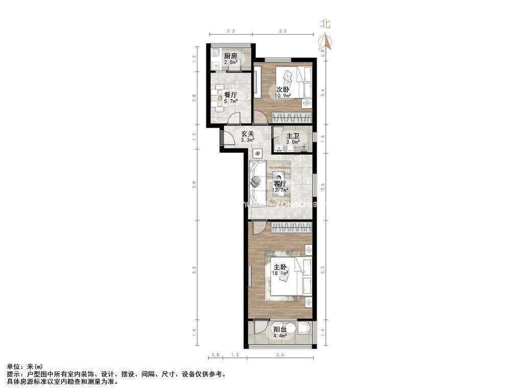 朝向南北 建筑面积74㎡