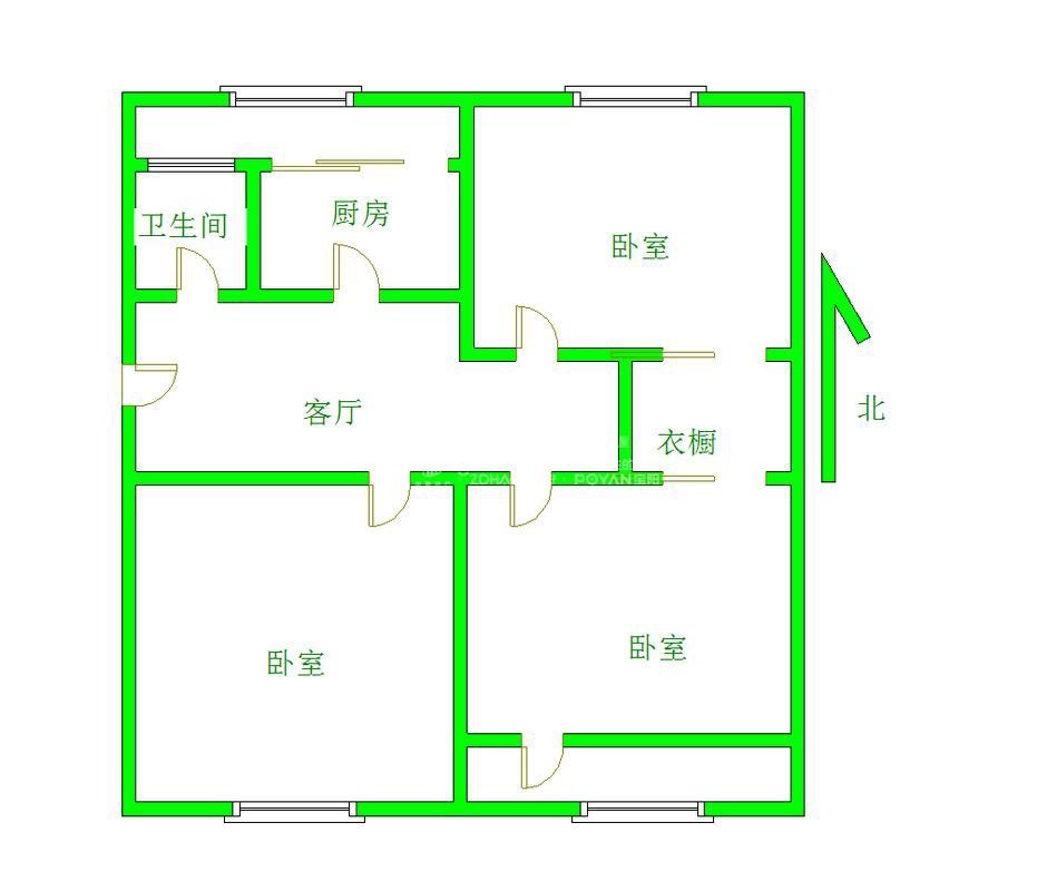 厅室3室2厅1卫1阳台