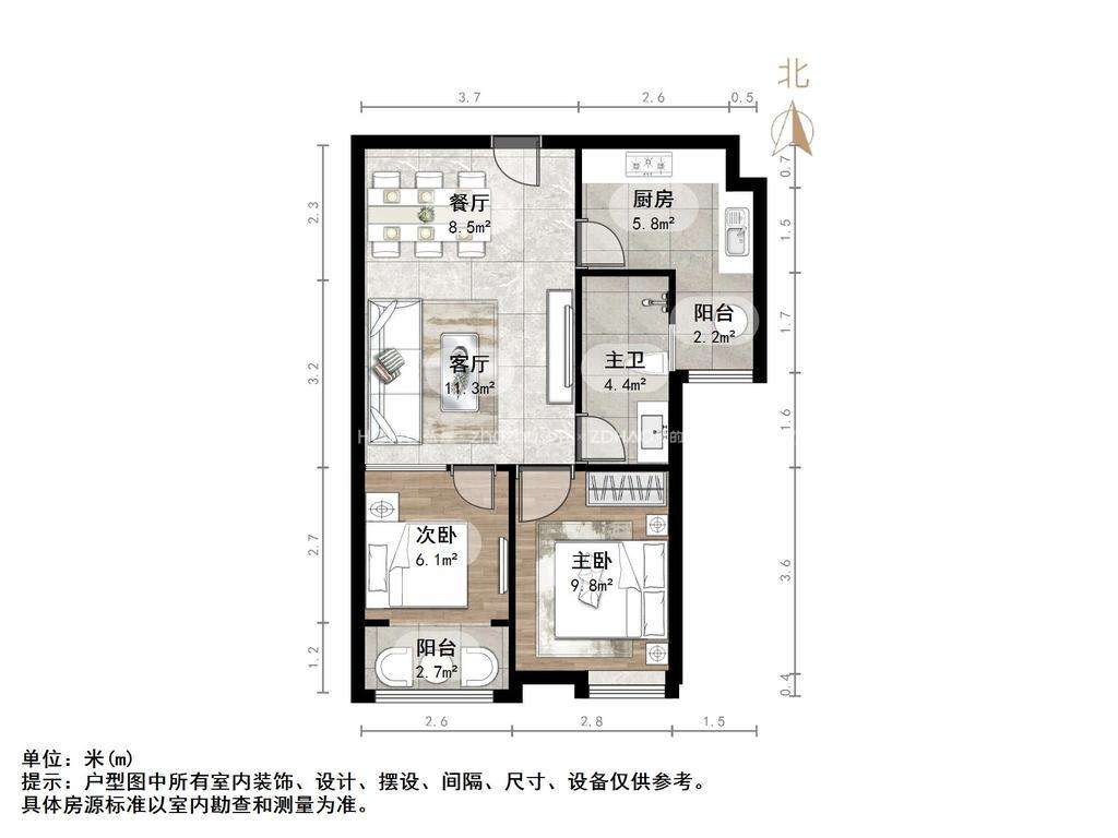 厅室2室2厅1卫1阳台