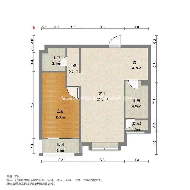 厅室1室2厅1卫1阳台