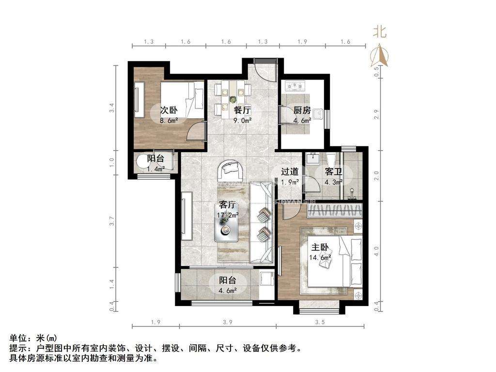 2、户型优势:南北卧室,客厅方正好用,单元对讲门,大院传达,安全性高!