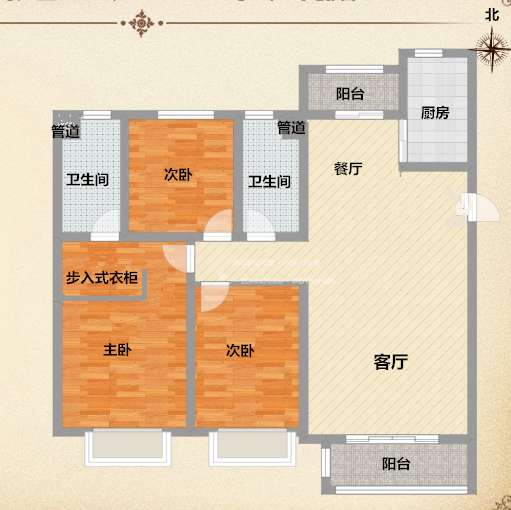 厅室3室2厅2卫1阳台