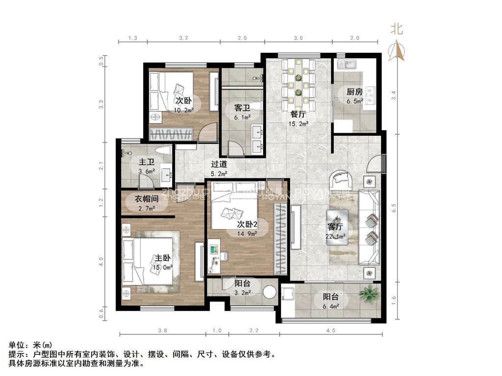 厅室3室2厅2卫1阳台