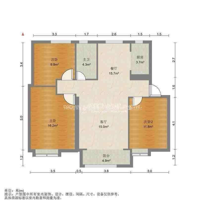 厅室3室2厅1卫1阳台
