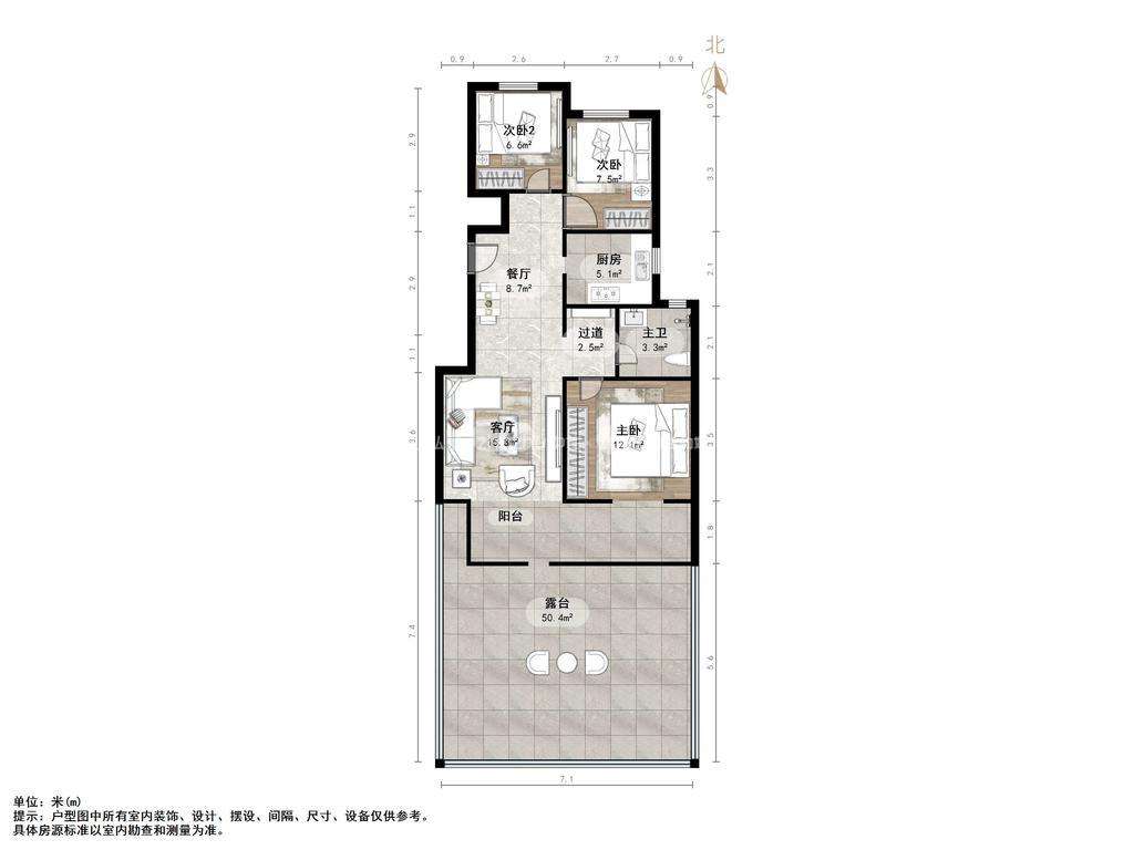厅室3室2厅1卫1阳台