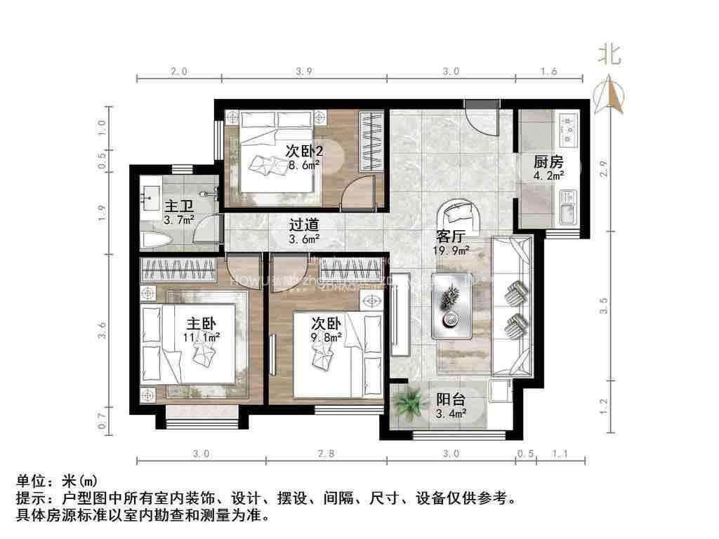 2、户型优势:南北卧室,客厅方正好用,单元对讲门,大院传达,安全性高!