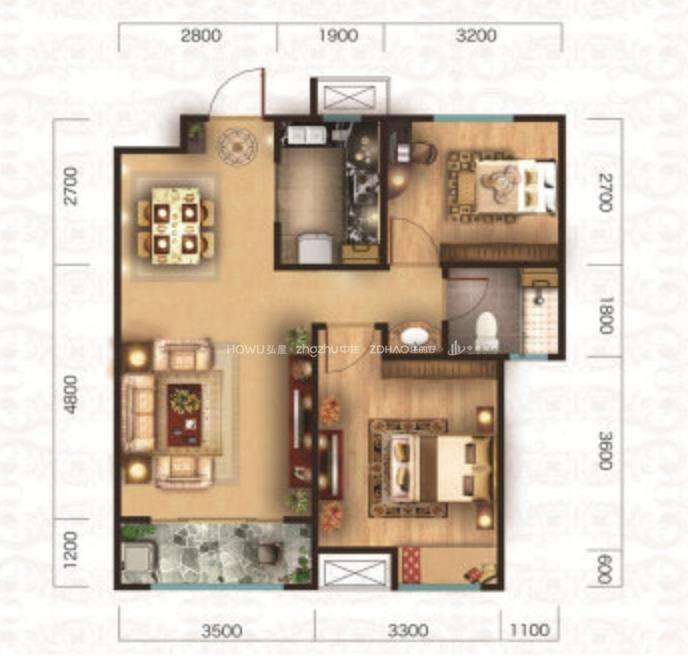 厅室2室2厅1卫1阳台