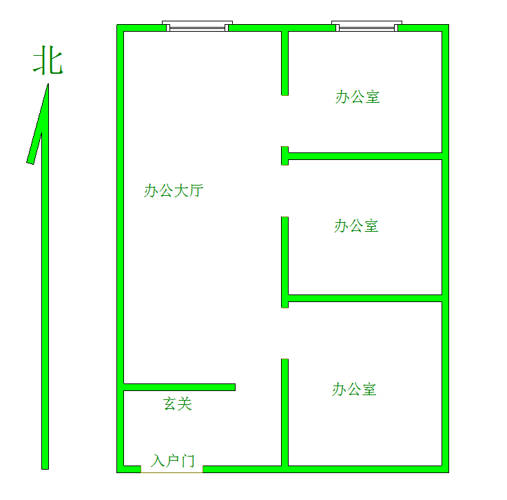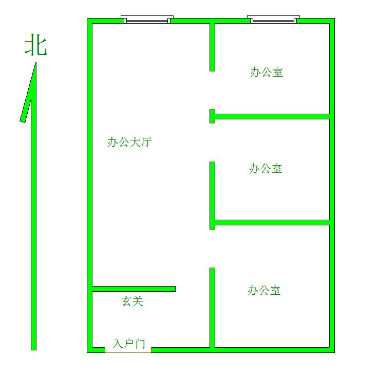 2、户型优势:北向大厅,方正好用,隔出三个独立办公室,安全性高!