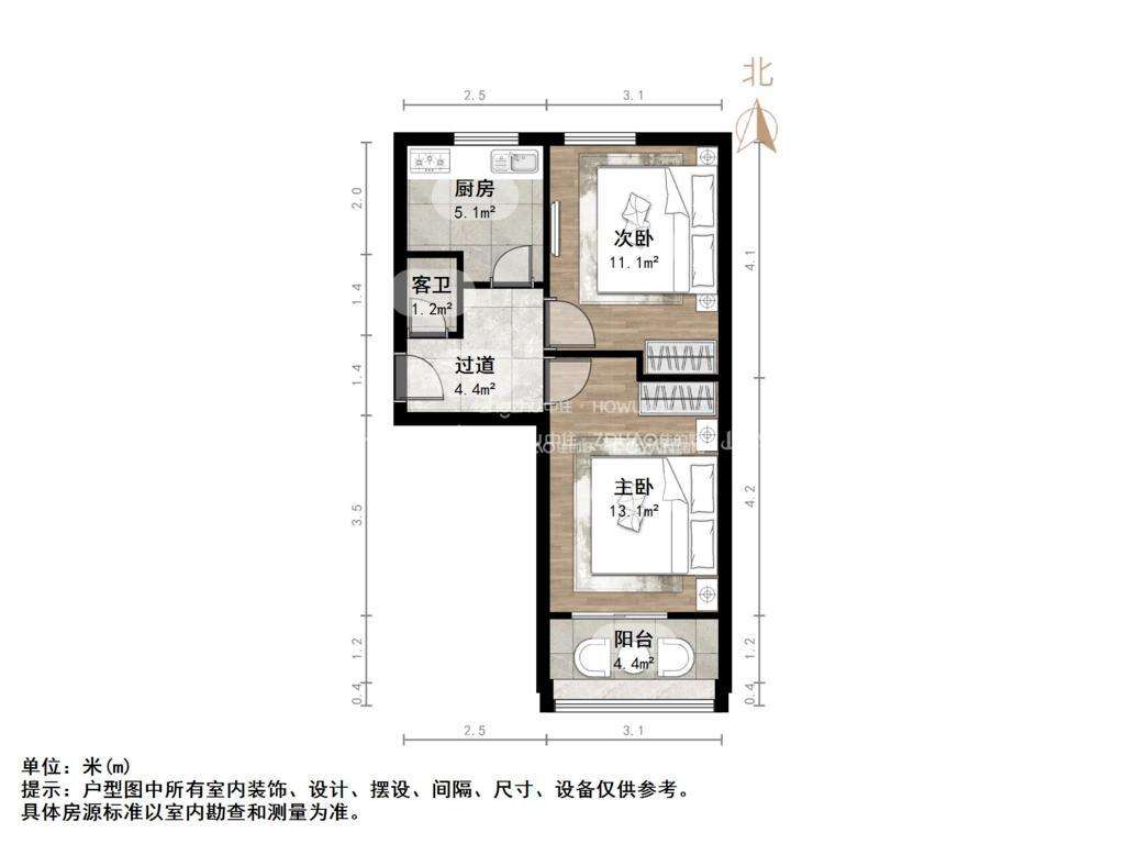 朝向南北 建筑面积50㎡