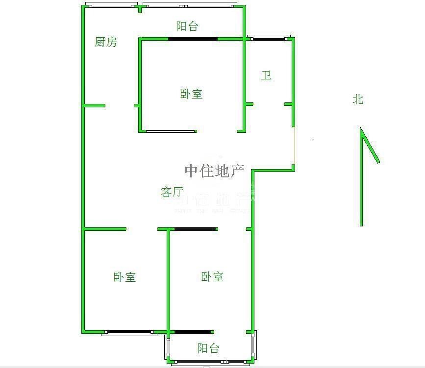 2、户型优势:3室1厅,南北卧室,客厅方正好用,单元对讲门,大院传达,安全性高!