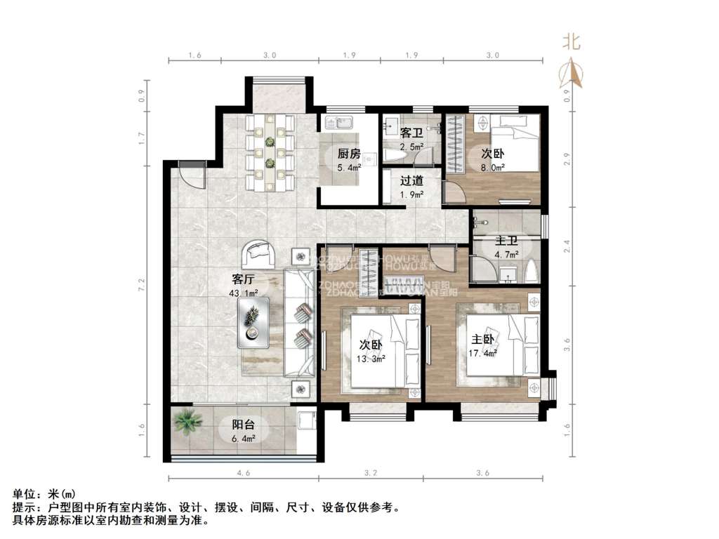 朝向南北 建筑面积126㎡