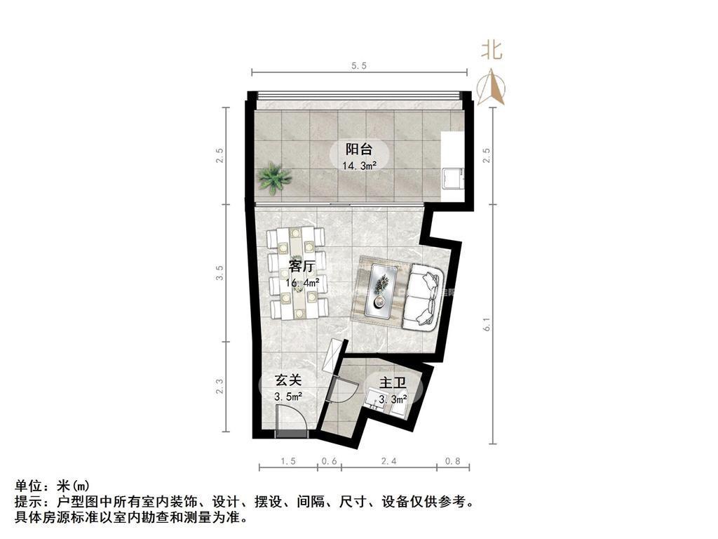厅室2室1厅1卫1阳台