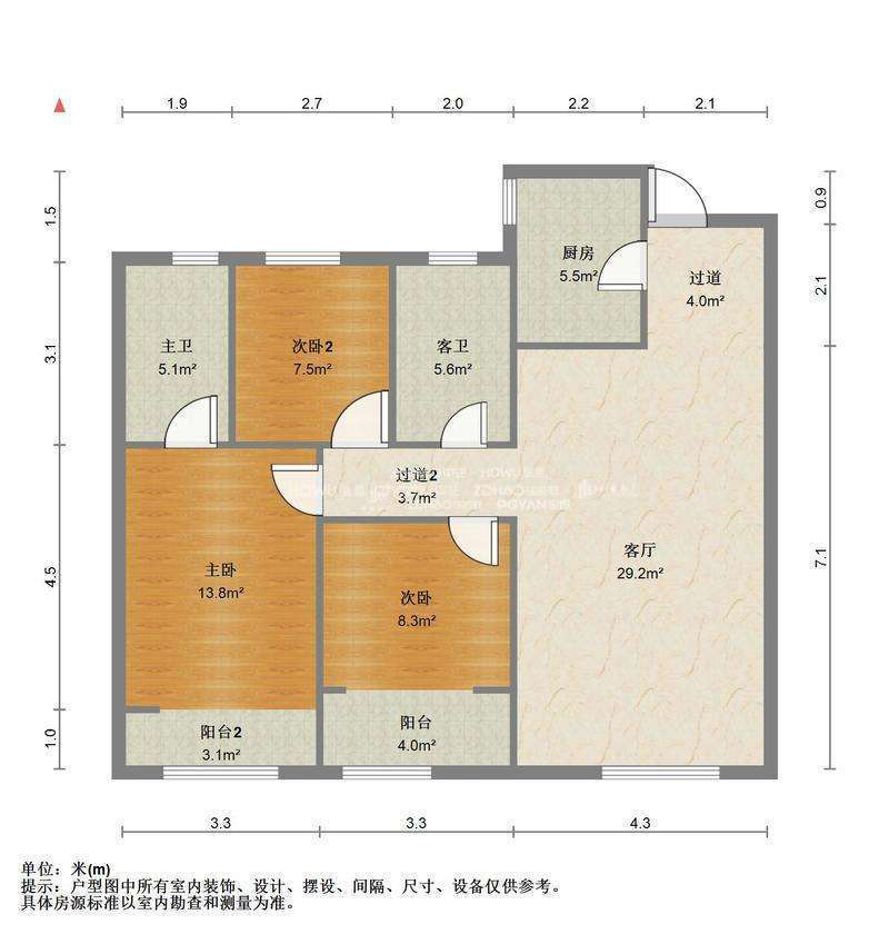 厅室3室2厅2卫1阳台
