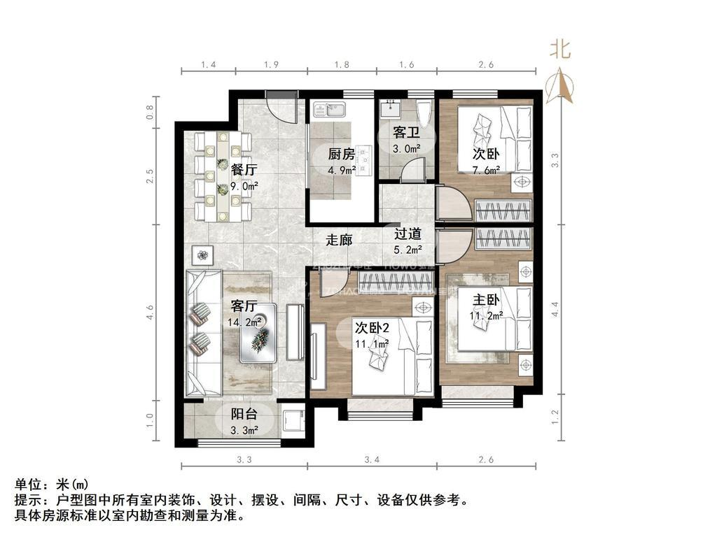 朝向南北 建筑面积104㎡