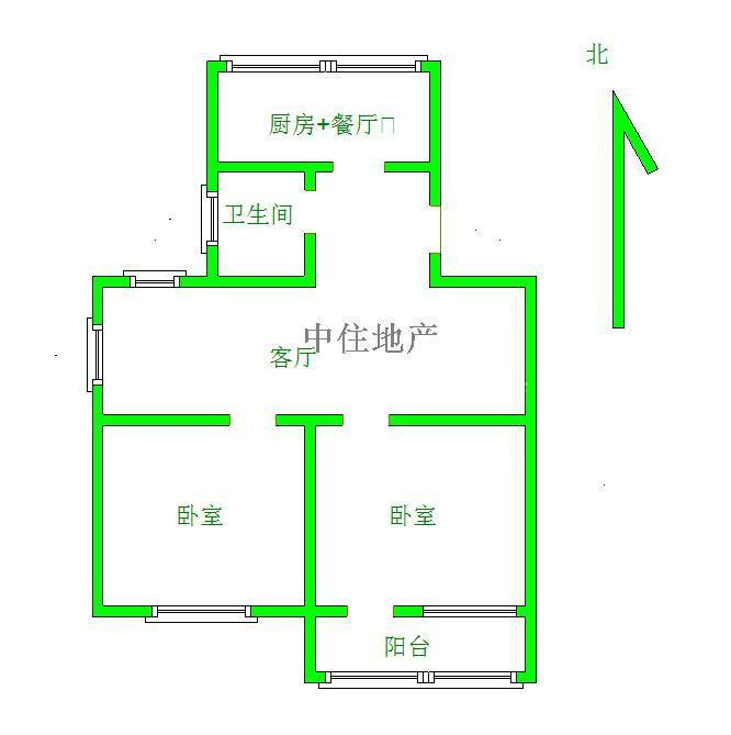 2、户型优势:两室两厅,南北卧室,客厅方正好用,单元对讲门,大院传达,安全性高!