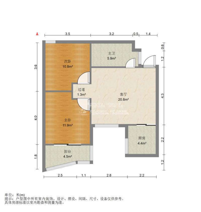 厅室2室1厅1卫1阳台