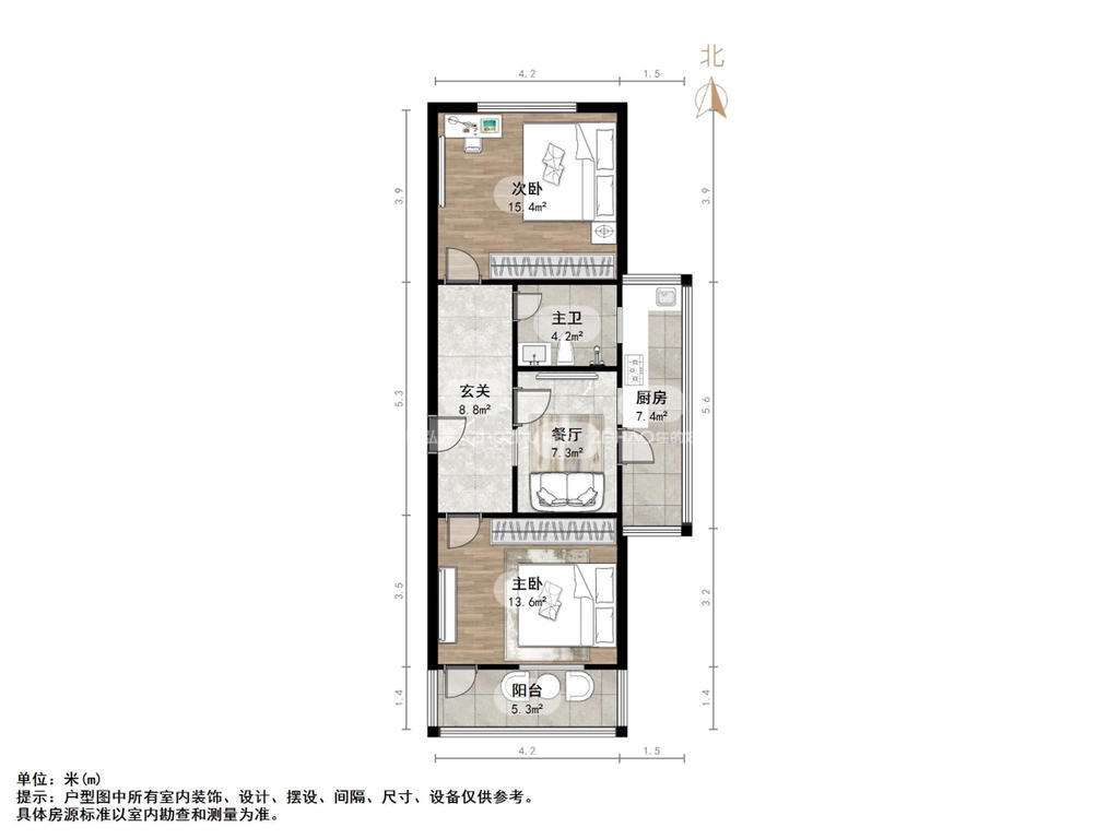 厅室2室1厅1卫1阳台