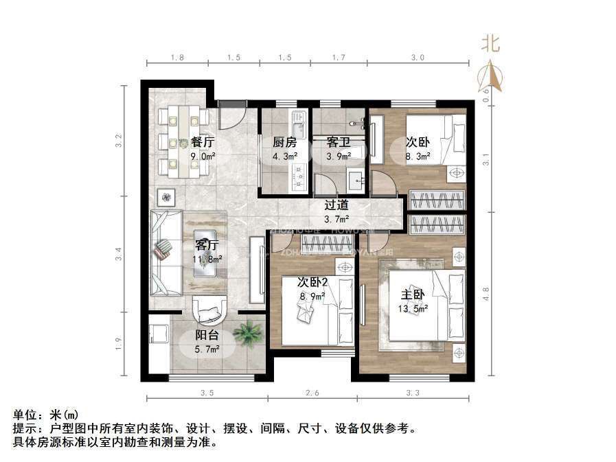 朝向南北 建筑面积97㎡