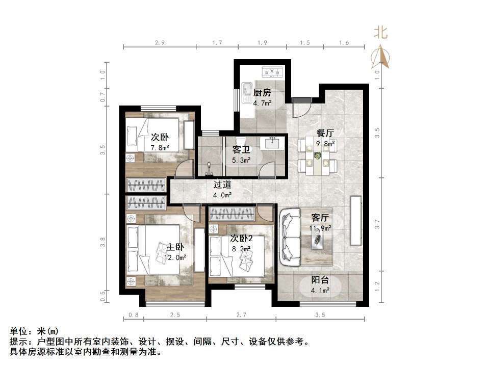 朝向南北 建筑面积102㎡