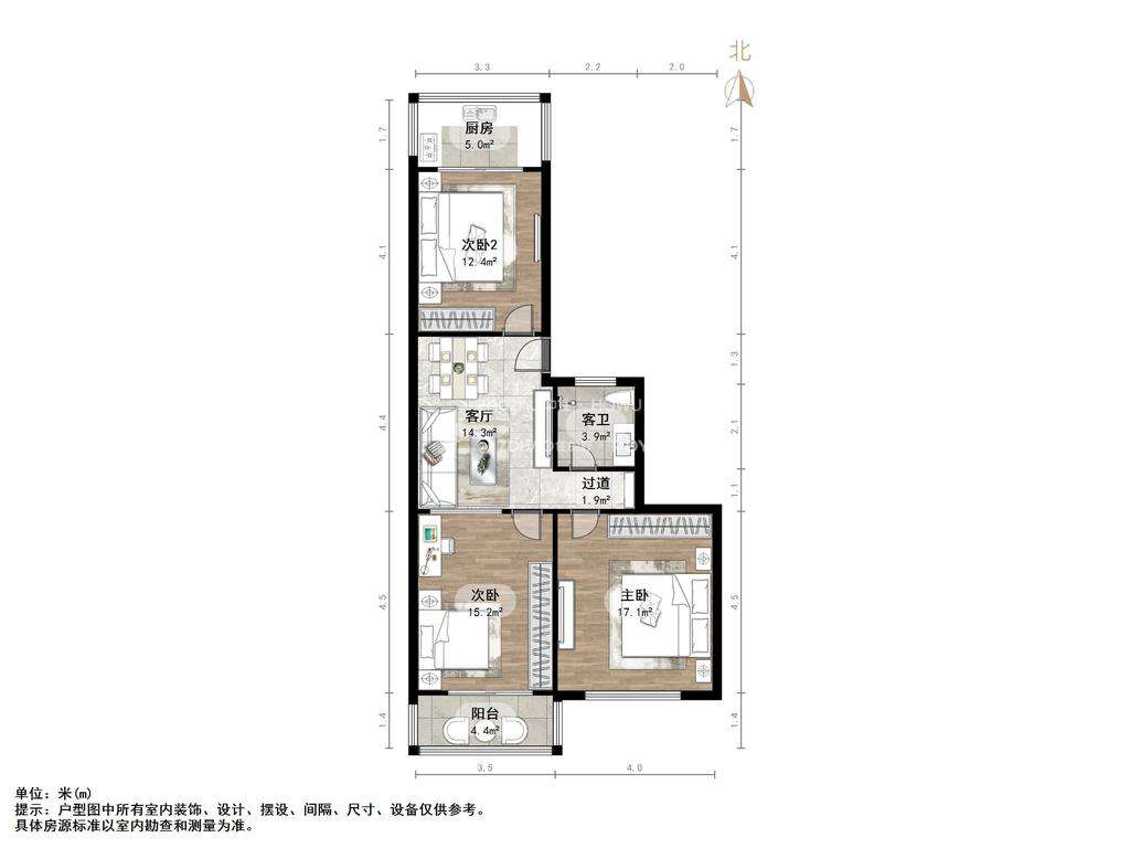 2、户型优势:三室两厅,南北卧室,客厅方正好用,单元对讲门,大院传达,安全性高!
