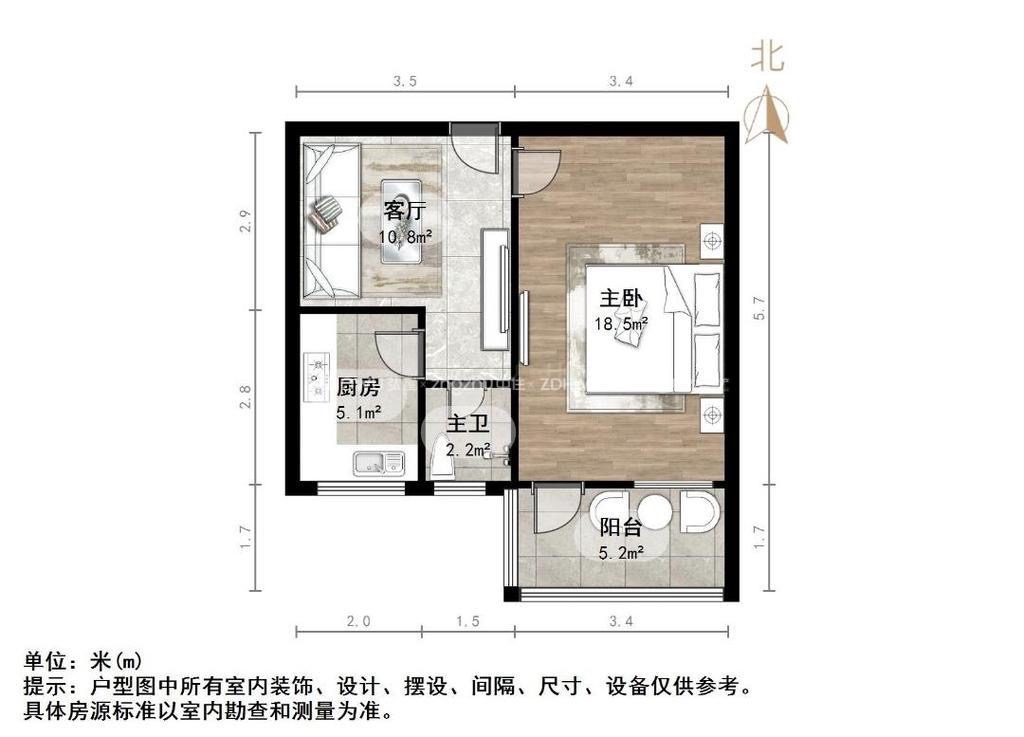 朝向南北 建筑面积52㎡