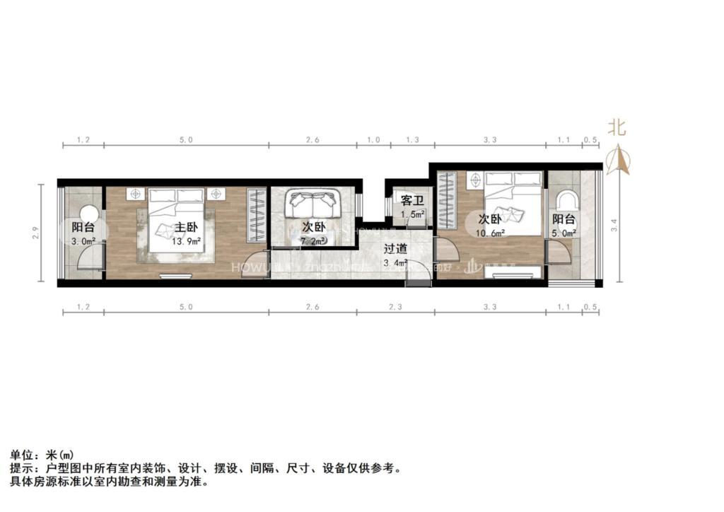 朝向南北 建筑面积46㎡