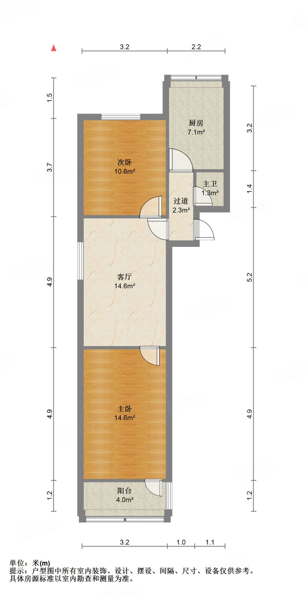 厅室2室1厅1卫1阳台