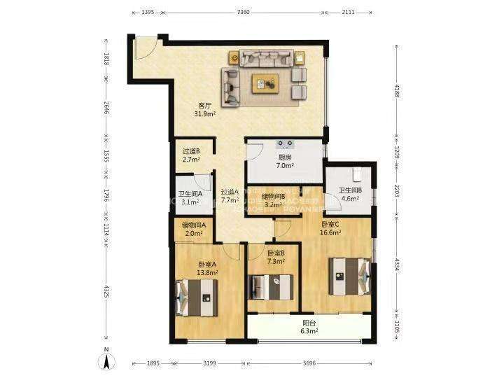 厅室3室2厅2卫2阳台
