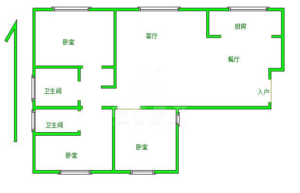 2、户型优势:三室两厅,南北卧室,客厅方正好用,单元对讲门,大院传达,安全性高!