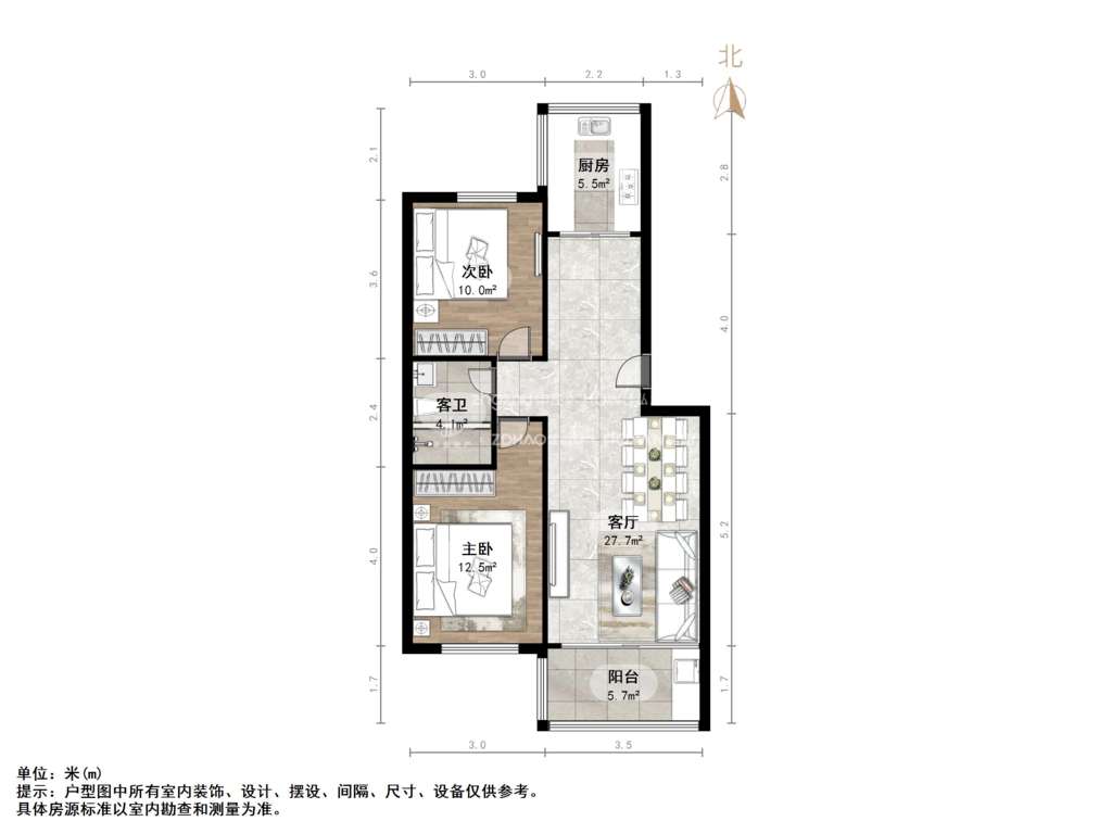 朝向南北 建筑面积65㎡