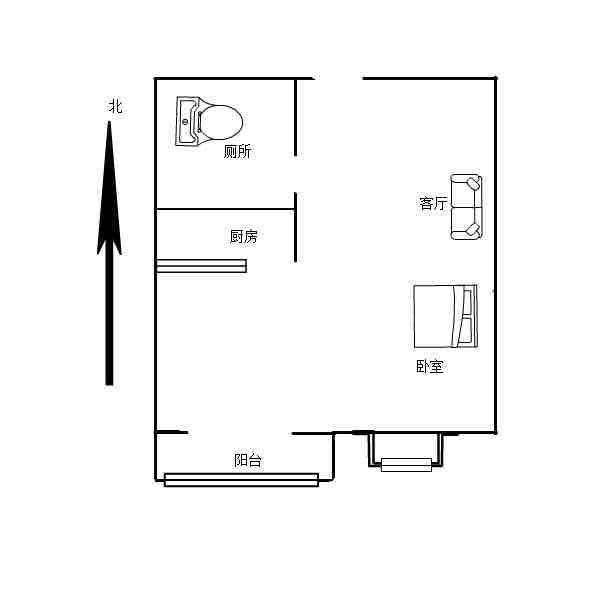 厅室1室1厅1卫1阳台