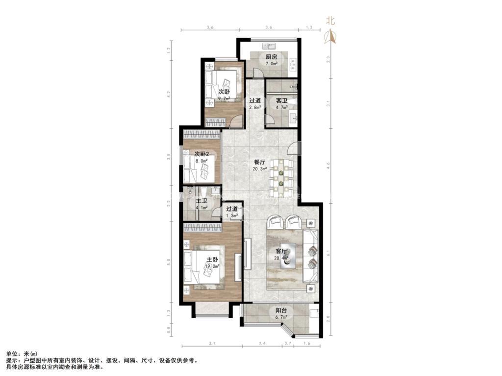厅室3室2厅2卫1阳台