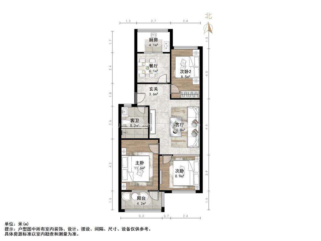 朝向南北 建筑面积91㎡