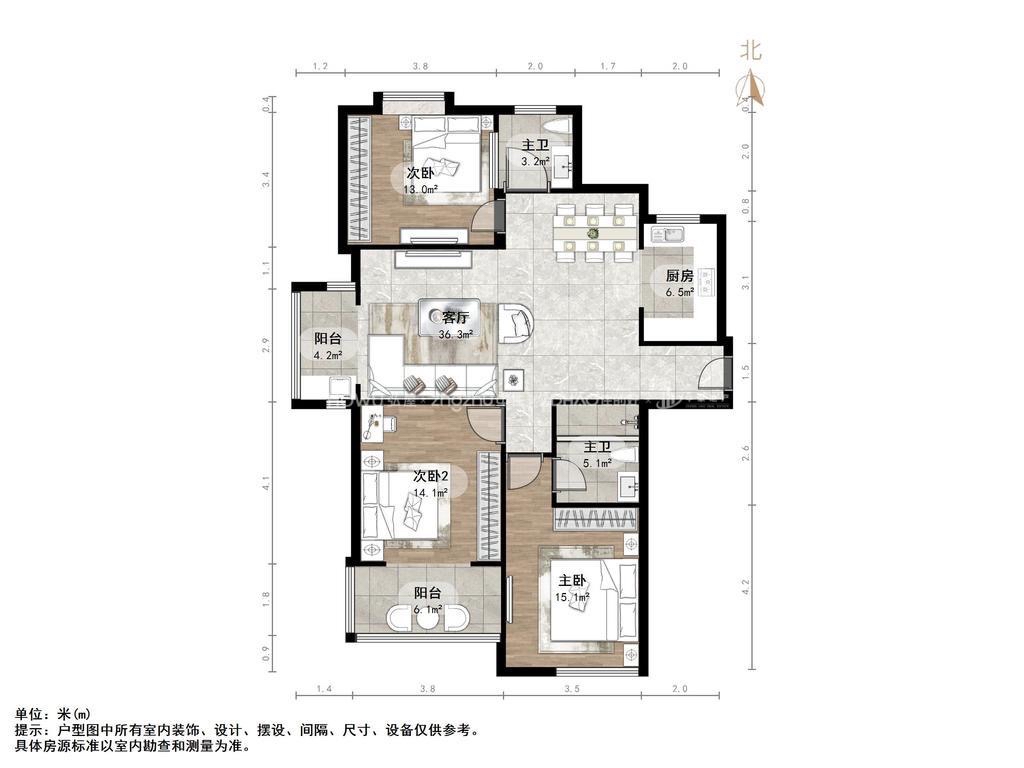 厅室3室2厅2卫1阳台